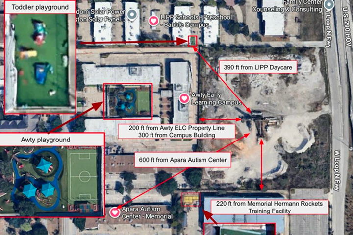 The plant’s industrial equipment sits just 300 feet from classrooms. A fence is all that separates heavy concrete production from preschoolers on tricycles. Webber is knowingly putting kids in harm’s way. And they’re doing it on land owned by the State of Texas.