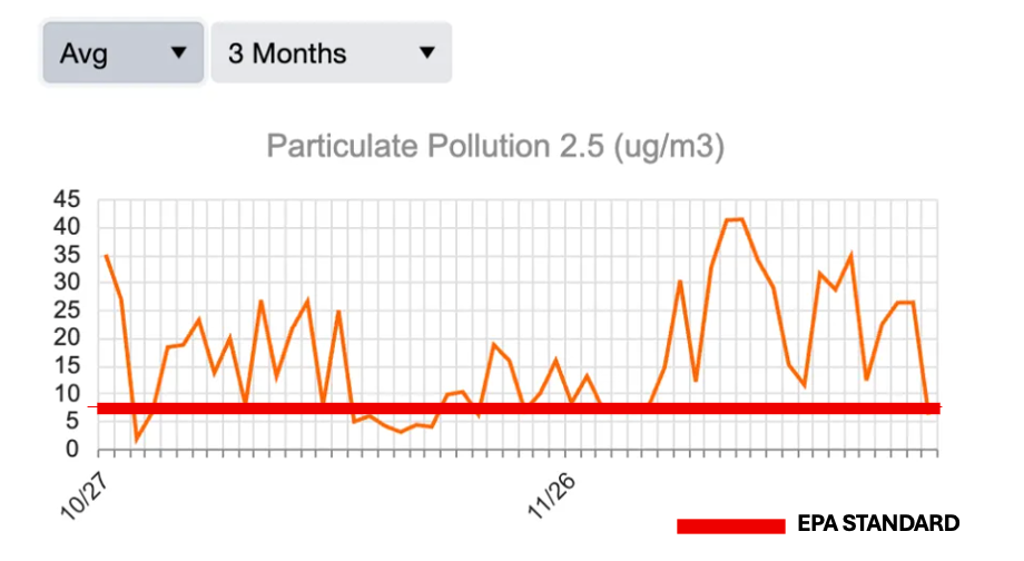 AWTY PLAYGROUND SENSOR PICKED UP EXTREMELY HIGH LEVELS OF PM2.5 PARTICLES OVER THE LAST 3 MONTHS. THIS IS EXTREMELY HAZARDOUS, ESPECIALLY TO YOUNG CHILDREN.